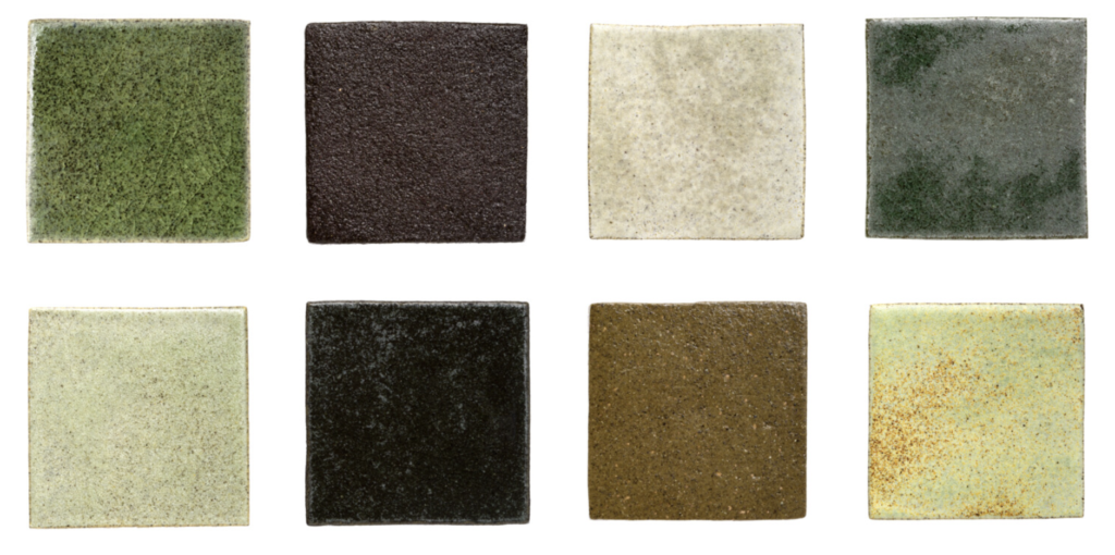 As cores variam de um creme claro a tons escuros de cinza e preto e uma rica palete de tons de verde e azul. As telhas podem ser produzidas com superfícies ásperas, lisas ou brilhantes. Como cada ladrilho é único, as suas variações subtis criam uma superfície vívida e bonita.